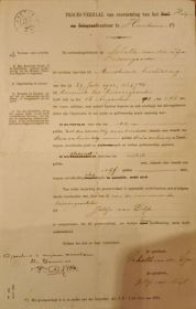 Akte van de Commissaris der Koningin d.d. 31 oktober 1900 waarbij de heer S. van der Lijn eervol ontslag wordt verleend als veldwachter in de gemeente Hennaarderadeel en als veldwachter wordt benoemd in de gemeente Westdongeradeel (Hantum)