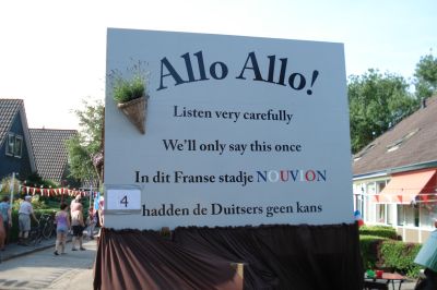 De feestwagen "Allo Allo" tijdens het opstellen voor de rondrit.