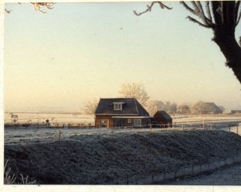 Een kijkje in 1998 vanaf de Brantgumerwei op de ijsbaan. Rechts de ingang van de bossingel.