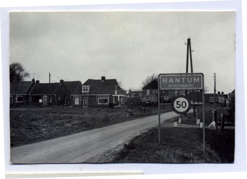 Vanaf de oprijlaan naar de boerderij van G. Hiemstra aan de Brantgumerwei een blik op Hantum