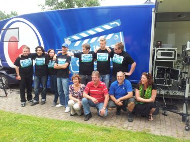 In 2012 hebben de 4h-dorpen, in het bijzonder Hantum en Hantumeruitburen, meegedaan aan het televisieprogramma Doch it foar dyn doarp van Omrop Fryslân. De deelnemende dorpen konden in samenwerking met Omrop Fryslân zelf een t.v. programma maken over hun dorpen en moesten dit zelf regisseren en presenteren. De gehele ploeg van Omrop Fryslân moest er ook aan geloven en gingen met z'n allen op de foto. Gehurkt vanaf links: Jaantje Olijnsma en Geert van Tuinen.