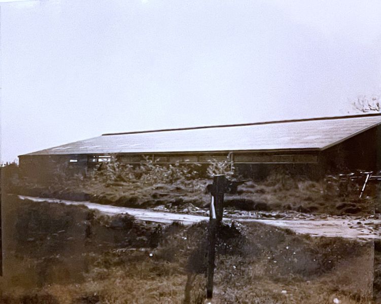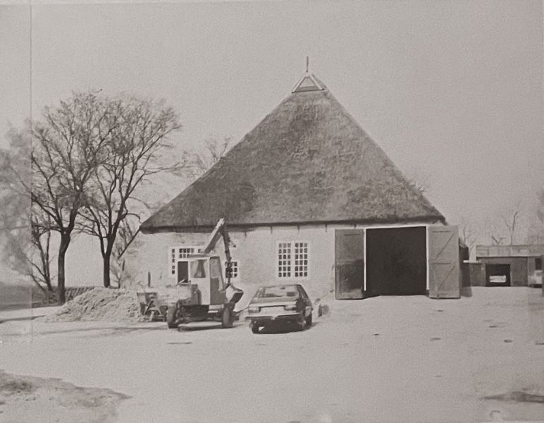 Ligboxenstal bij boerderij Dokkumerwei 3 in het jaar 1981.