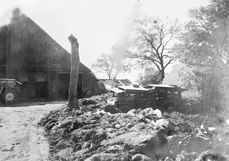 Ligboxenstal bij de boerderij aan de Loubuorren 12 in maart 1981.
